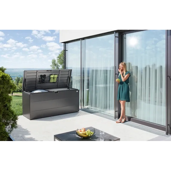 De inhangzak is vervaardigd uit zwart gevlochten polyester en combineert een stevige constructie met een praktische indeling. Ideaal voor het opbergen van kleinere tuinaccessoires zoals handschoenen, tuingereedschap, onderhoudsproducten of losse kussens. Zo voorkomt u dat kleine items onderin de box verdwijnen en houdt u uw opbergruimte overzichtelijk en georganiseerd.