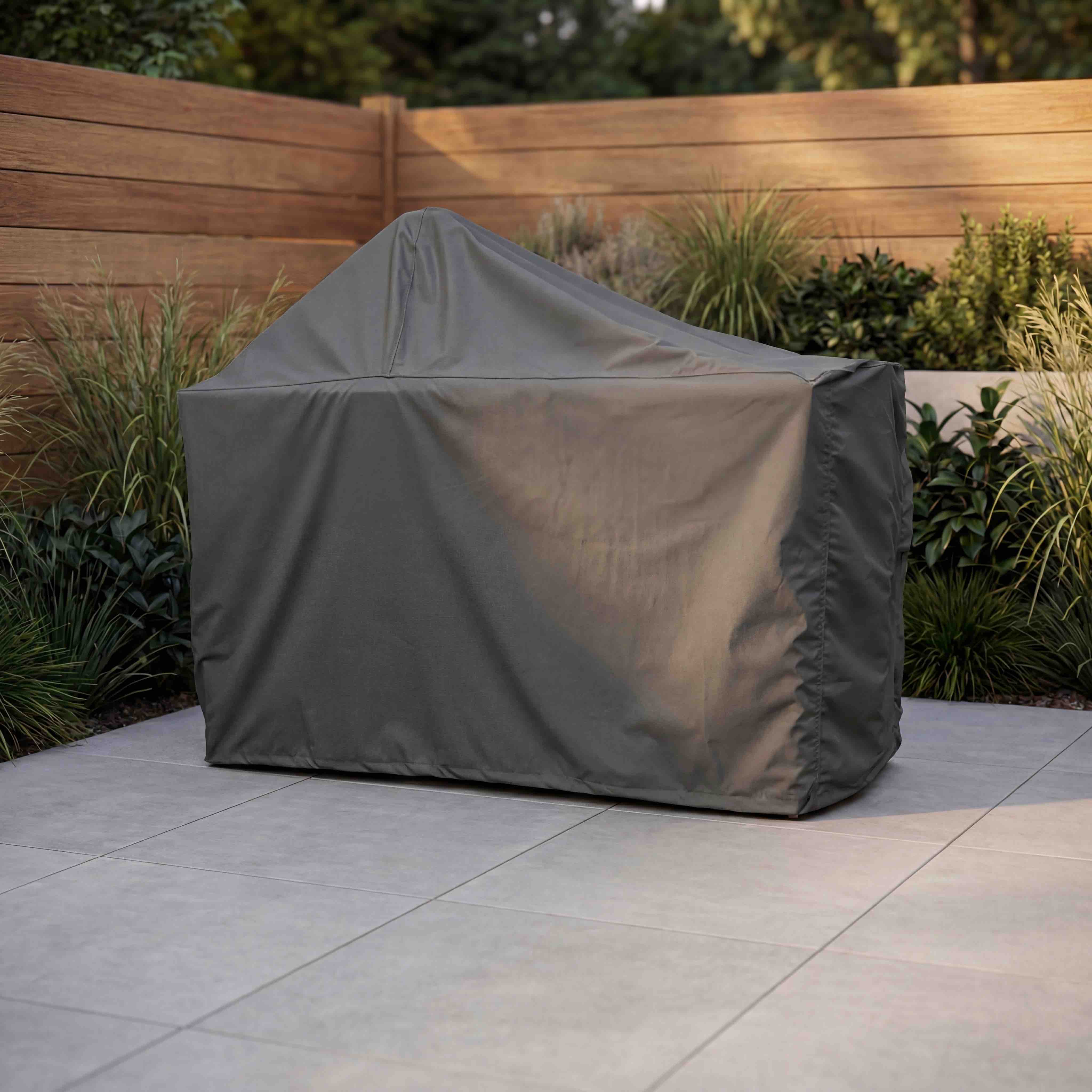 The lower edge of the cover is adjustable, allowing it to be pulled snugly around the table and reducing the risk of it blowing up in the wind. Padded handles make putting the cover on and taking it off comfortable, while the supple fabric is easy to handle yet feels reassuringly robust. After use you can store the cover in the supplied storage bag. If your outdoor kitchen is in an exposed, windy spot, you can additionally secure the cover with accessories such as sandbags, bungee cords, elastic straps or clamps.