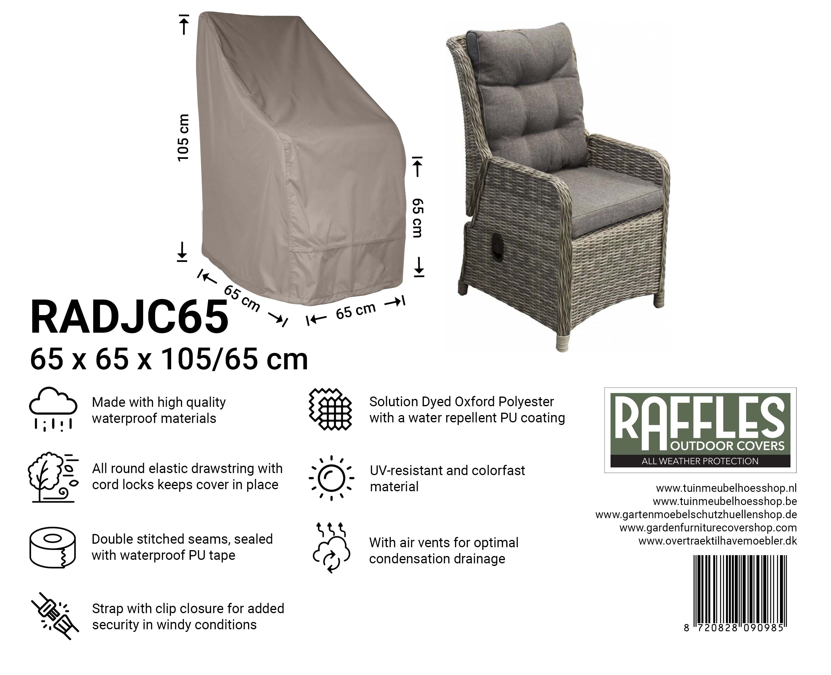 With the RADJC series lounge chair covers from Raffles Covers, you protect your adjustable lounge chairs all year round against rain, dirt, UV radiation and frost. The neutral covers blend discreetly into any garden and ensure that your lounge chair is clean and ready for use as soon as spring arrives.