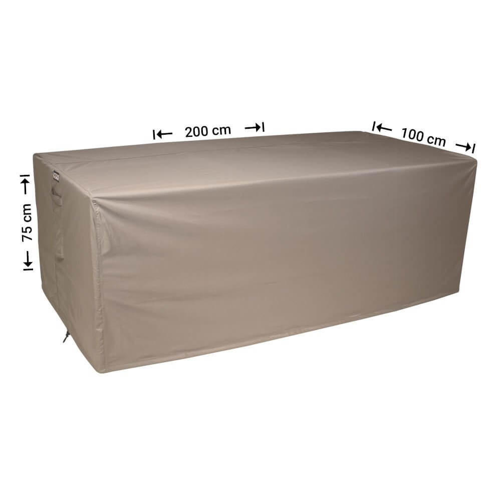 The covers are suitable for lounge sofas made of, among others, wicker, aluminium, steel, plastic or wood, with a standard back height of approx. 75 cm. For sofas with a higher back and lower armrests there are special “shaped” covers with a sloping profile. Some models are also frequently used for bistro sets, balcony sets and daybeds.
