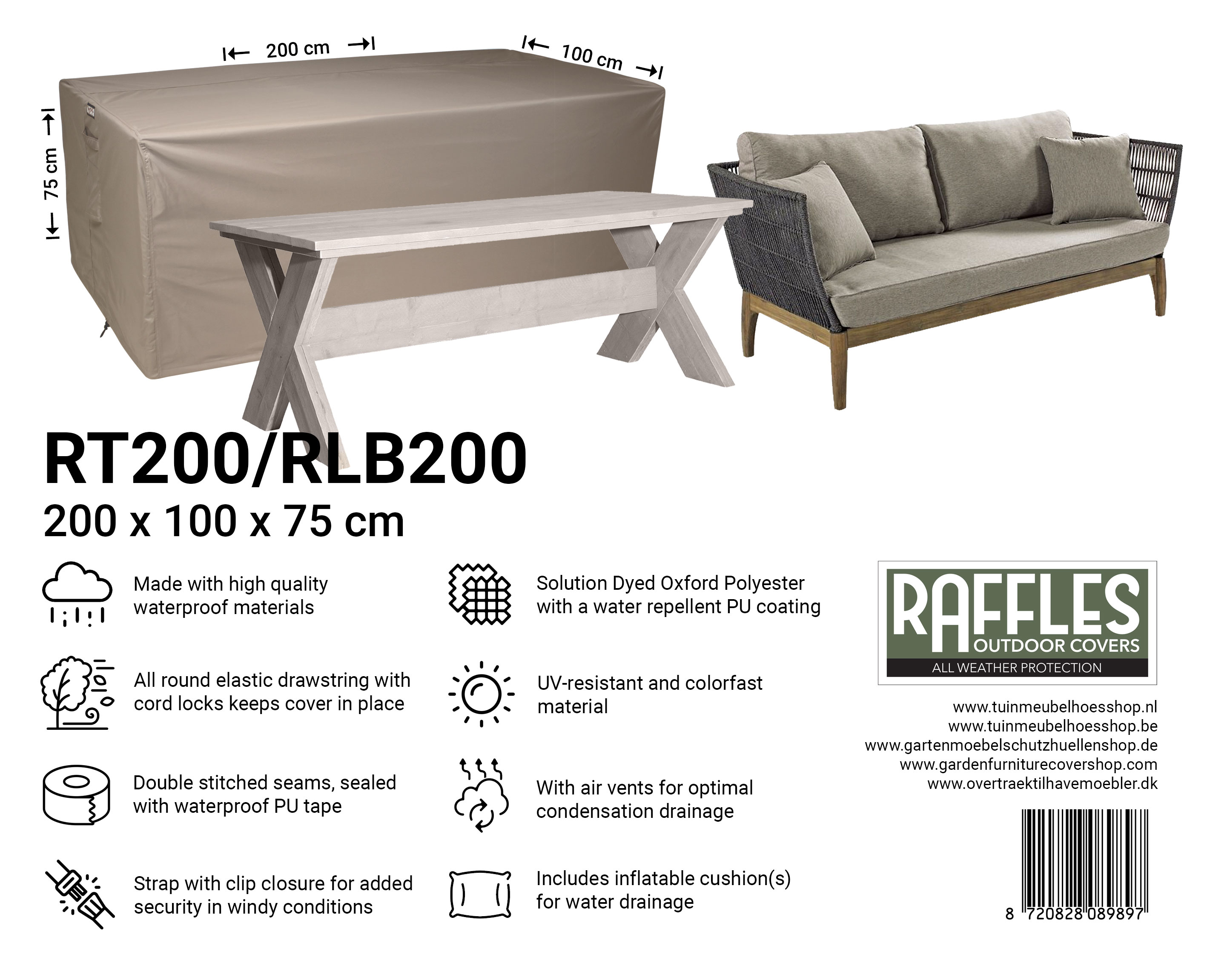 With a Raffles Covers lounge sofa cover from the RLB series, you give your lounge sofa, daybed or garden bench professional protection: clean, dry and ready for use, season after season.
